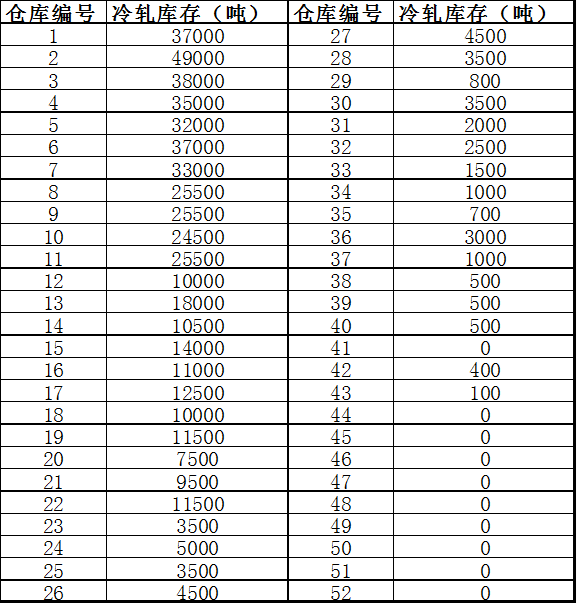 表1:全国主要城市冷轧板卷库存变化
